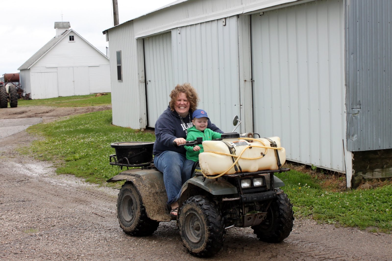 Zach and I went on a 4-wheeler ride. He calls them vroom vrooms. My awesome hairdo is courtesy of the weather.