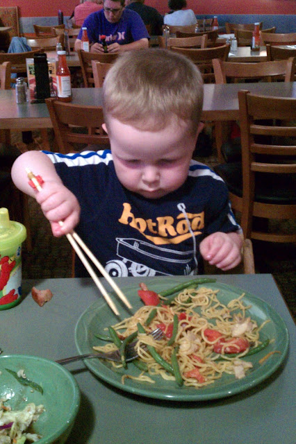 Zach was so determined to eat with chop sticks at HuHot tonight. He did a GREAT job, even picking up the noodles! We were very impressed! (cell phone picture