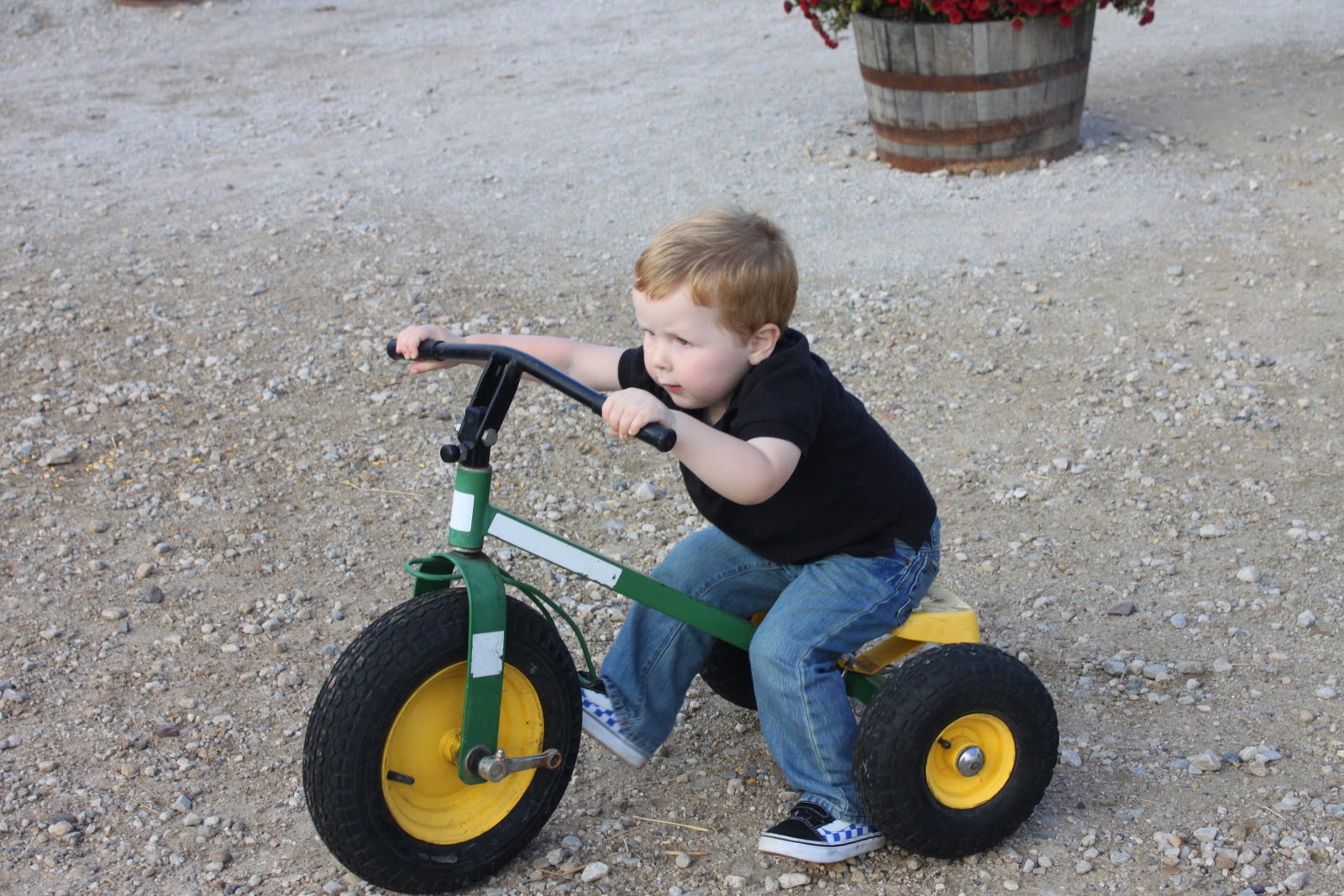 Zach rode the pedal tractors...