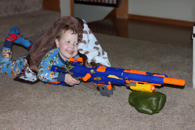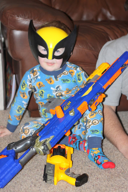Tony got a new Nerf gun that is bigger than Zach. If all the boys in the house didn't have such fun playing, I would try to find a dart gun rehab for him!