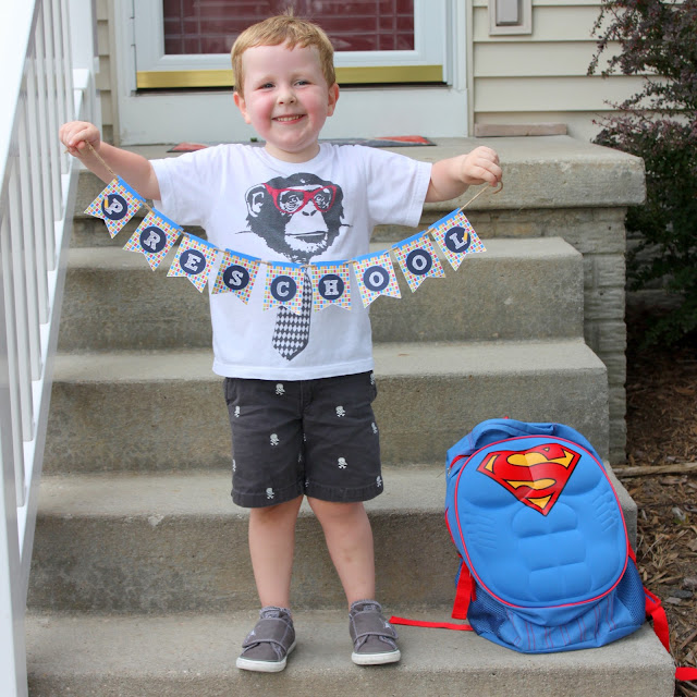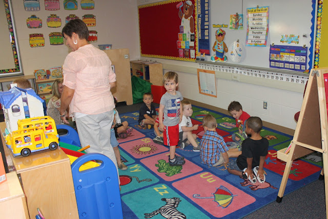 Thursday was the first day of preschool for Zach. Chris and I both took the morning off so we could take him and pick him up together. Normally the teachers will be waiting outside for the kids but today they wanted the parents to walk them in and get them settled. The first 5 minutes everyday they can play with items from the puzzle station. Zach played for 1 minute and looked and Chris and I and said "When are you going to leave?" There are 11 kids in his class, 9 boys and 2 girls. Lillian, Carter, Monti, Deakon, Topher, Ayden, JJ, Trenton, Rory, Aurelia, and Zach. When we picked him up, he was kind of a zombie so he must have been stimulated the whole time. His favorite part was bouncing a basketball by shaking a big parachute outside. We got an email from the teacher that he did wonderful and was a great listener. I took a ton of pictures (imagine that!), but it felt like a big day! Chris and I are so proud of how brave Zach did. I teared up only once when another little boy in the class started crying for his mom.
