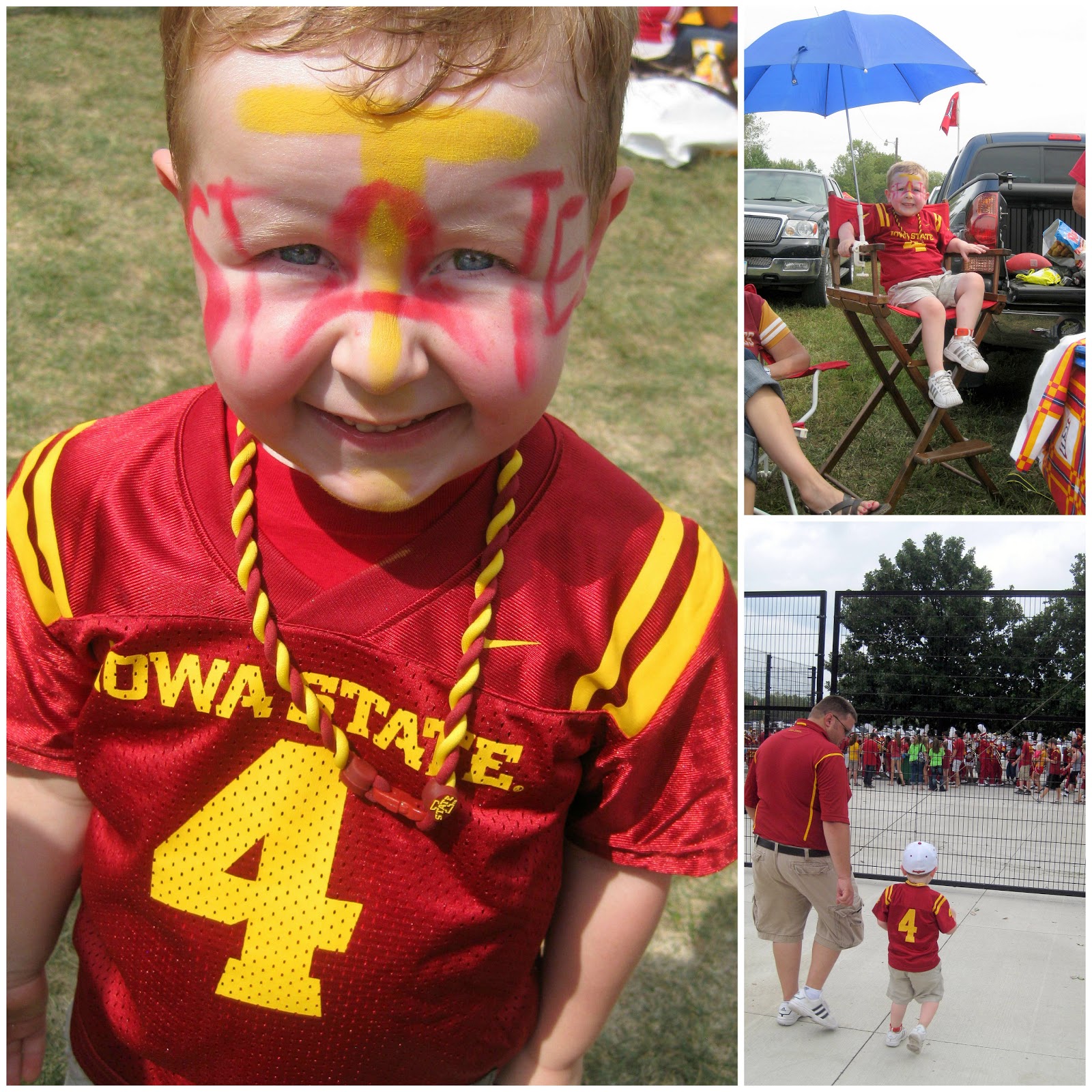 This year we got season tickets to the ISU football games. We had a great time Saturday cheering the Cyclones on to victory over Tulsa! Zach loved tailgating (eating his brownies!) with Mimi & Papa and the bounce house and face painting with the Lil' Cyclone Club. Go State!