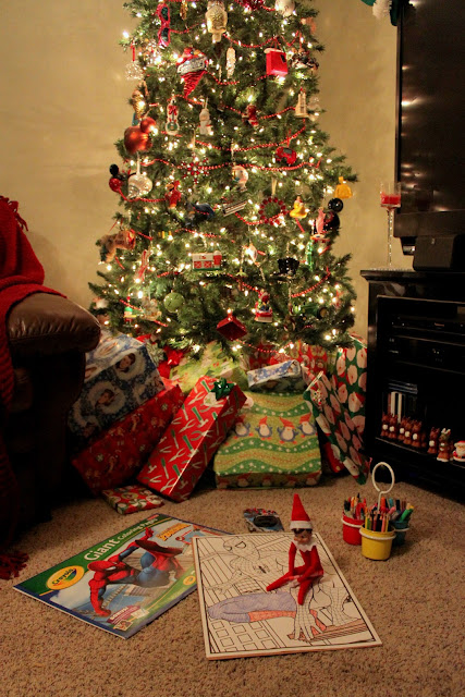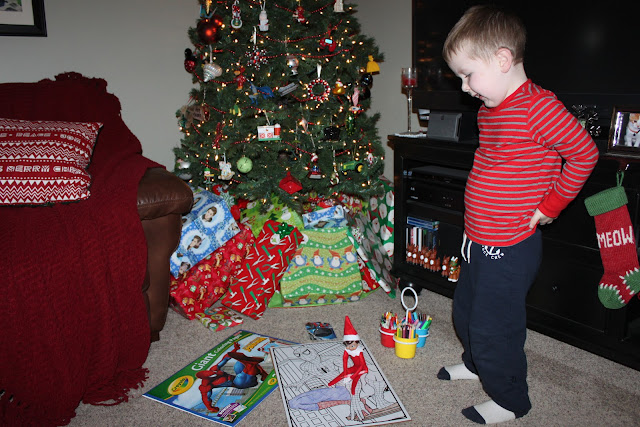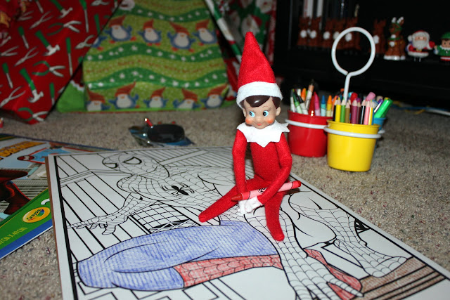 Who would have guessed that Elfie likes Spiderman just like Zach? This morning we found him coloring a picture under the Christmas tree.