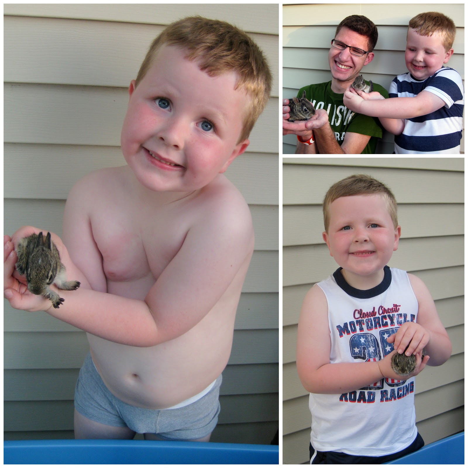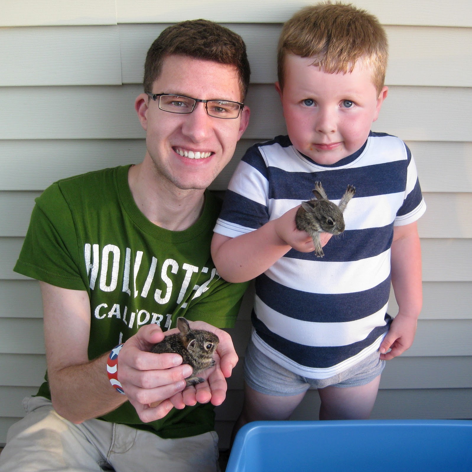 Monday was a dramtic night at our house. While mowing, Tony ran over a family of baby bunnies; 2 went to bunny heaven and 3 survived. Tony & Zach "rescued" 2 of them and named them Bugs & 21. They were convinced they were going to keep and raise them but we ended up releasing them Tuesday morning. I guess Tony had a traumatic incident with a grasshopper as a kid and was FREAKED to touch the bunny. Zach picked them up like it was no big deal. We helped Tony conquer his fear (but not without making fun of him for being a scaredy cat first!).