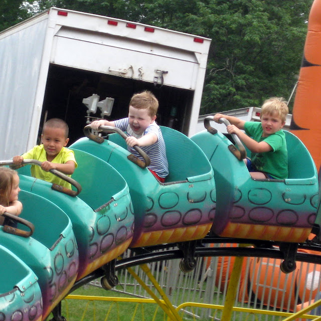 Urbandale has a big 4th of July celebration every year. It just so happens the pool Zach takes swimming lessons is right across the street from the carnival. Tuesday after lessons we walked over and enjoyed some rides. Zach rode his first roller coaster and his face shows how much he LOVED it. Chris is scared of ferris wheels so Zach and I conquered that one together. The favorite is always bumper cars. What is it about running into things that thrills boys so much?