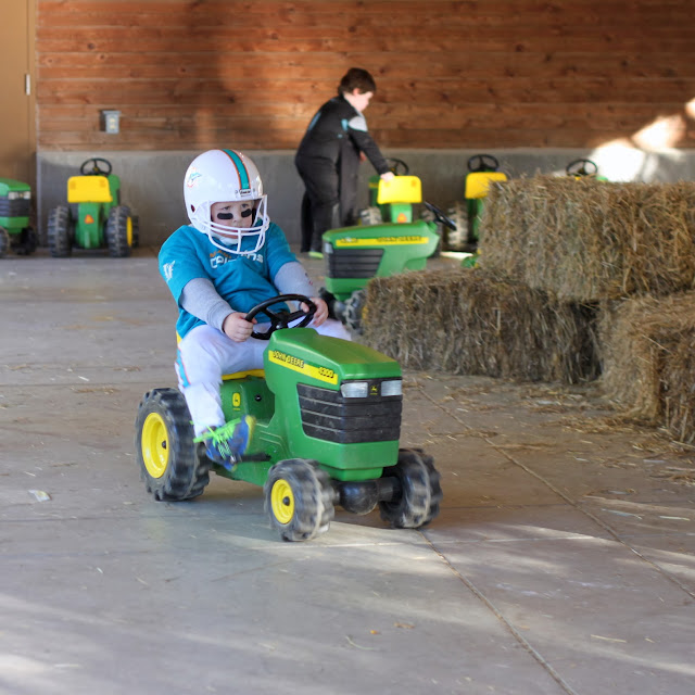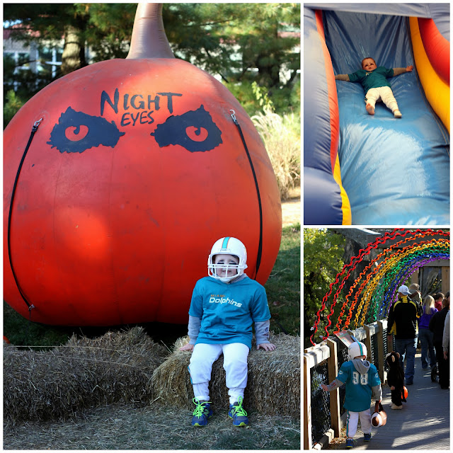 Sunday evening we went to Night Eyes at the Blank Park Zoo. The weather was wonderful and we actually got to see some animals. It was a great way to kick off Halloween week with our little Miami Dolphins football player.