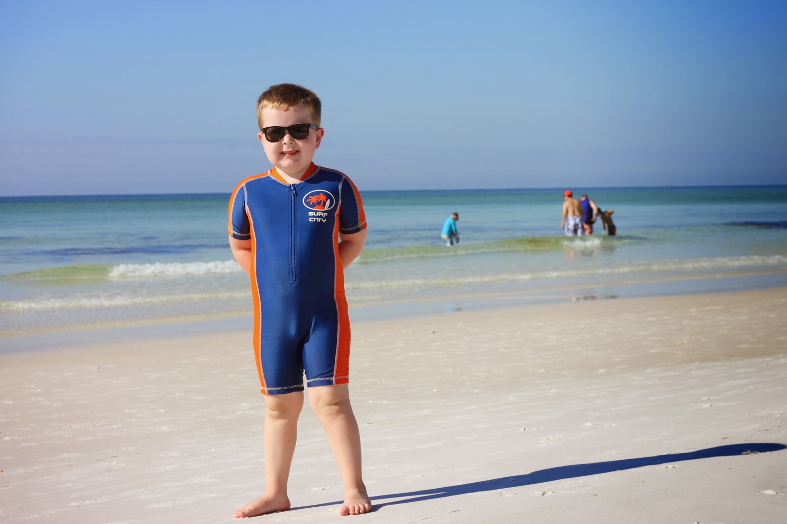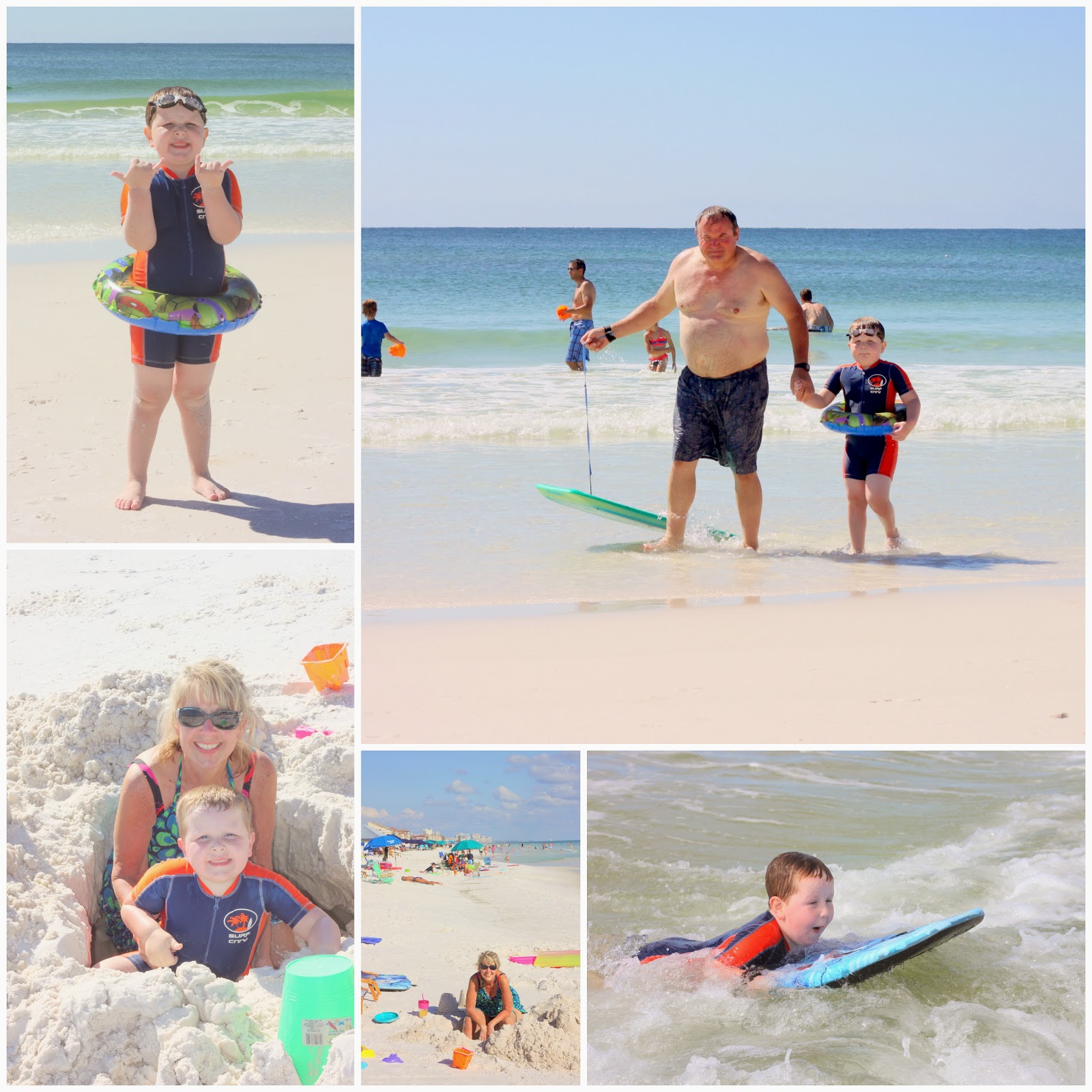 Highlights include: watching Zach work on his letters by writing in the sand, boogie boarding, relaxing, hole digging, watching dolphins, and just being together.